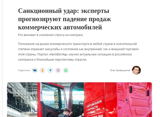 Санкционный удар: эксперты прогнозируют падение продаж коммерческих автомобилей