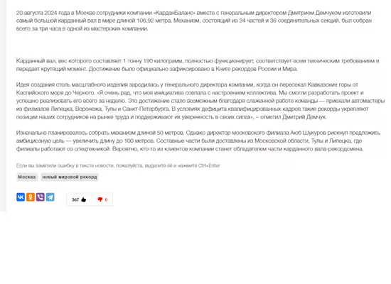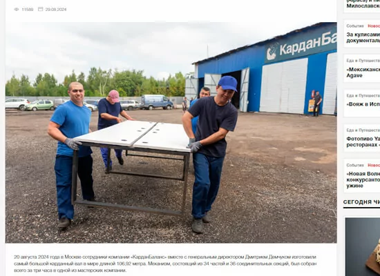 В Москве установили новый мировой рекорд: создан самый длинный карданный вал