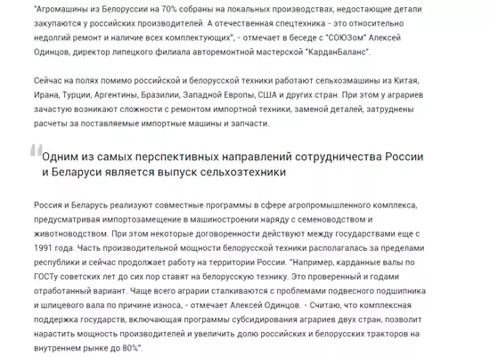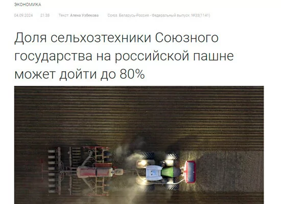 Доля сельхозтехники Союзного государства на российской пашне может дойти до 80%