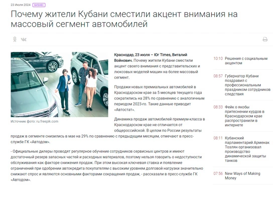 Почему жители Кубани сместили акцент внимания на массовый сегмент автомобилей